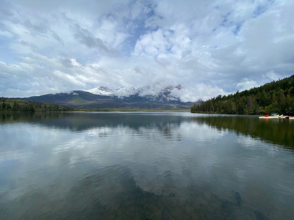 [NOTE: Different photos from my FB post]. Day three in Canada started quietly on the placid shores of well-known Pyramid Lake. With a chill in the air, we acquired a couple of hot chocolates from the local resort and took off to explore the lake.